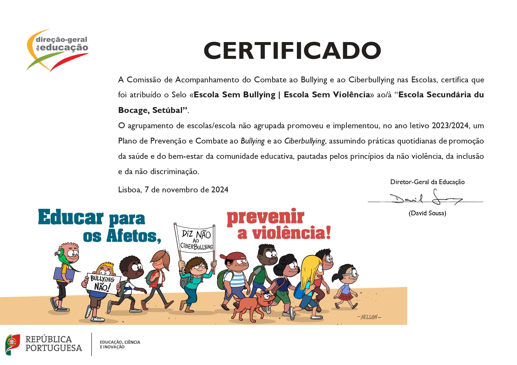 No dia 20 de outubro assinalou-se o Dia Mundial do Combate ao Bullying, numa cerimónia ocorrida na Escola Superior de Tecnologia do Barreiro, a nossa Escola foi galardoada com o selo ‘Escola Sem Bullying | Escola Sem Violência’ 2022/2023, por ter promovido e implementado práticas quotidianas de promoção da saúde e do bem-estar, pautadas pelos princípios da não violência, da
